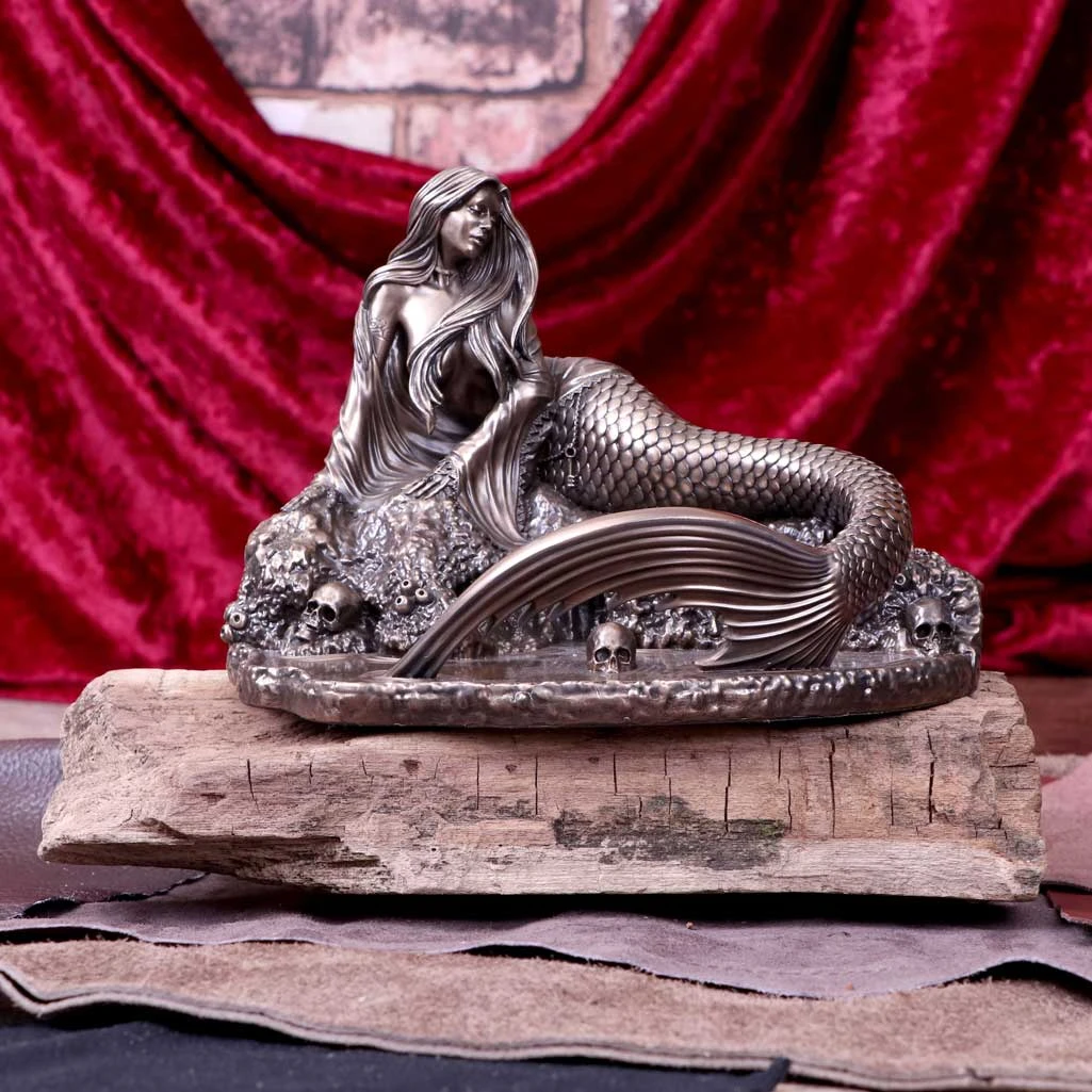 From the incredible imagination of Anne Stokes, this figurine was immortalised in resin by alternative brand Nemesis Now. Throughout history, sirens have been known for their ability to lead sailors to an untimely demise using only their captivating looks and enchanting call. Sitting upon a rock, this lamenting siren washes her tail through the skulls of her victims as they float helplessly on the water’s surface. As the mist rolls in, an unsuspecting ship is lured into her grasps as she beckons in another eternal companion. Cast in the finest bronze resin, this beauty would make the perfect addition to any mythological fantasy collection.