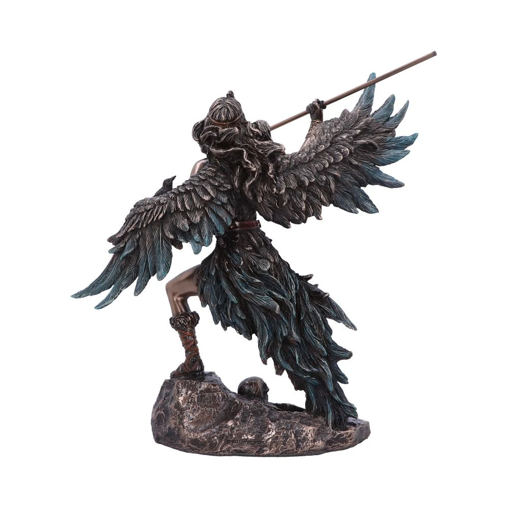 Morrigan is een Keltische godin van oorlog en dood, die te zien is met een been opgeheven op een rots terwijl ze een speer terugtrekt. Haar harnas en vleugels zijn voorzien van prachtige blauwe details, die de mythe symboliseren dat zij op het slagveld de vorm van vogels aannam en zich tegoed deed aan het vlees van de krijgers. Op haar hand zit haar vertrouwenskraai, die haar vergezelt tijdens de strijd. Hierdoor is dit beeldje de perfecte aanvulling op elke mythische collectie.