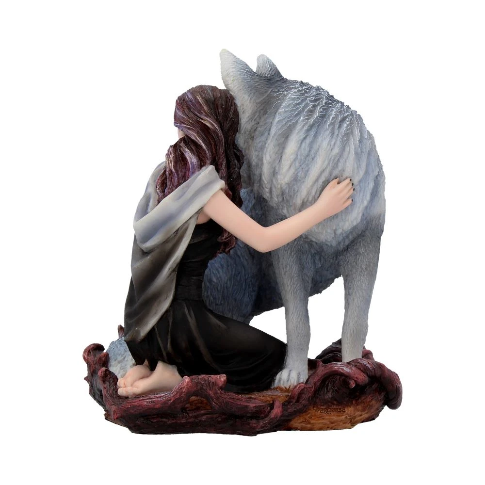 - Soul Bond by Anne Stokes hand-painted wolf and woman resin figurine