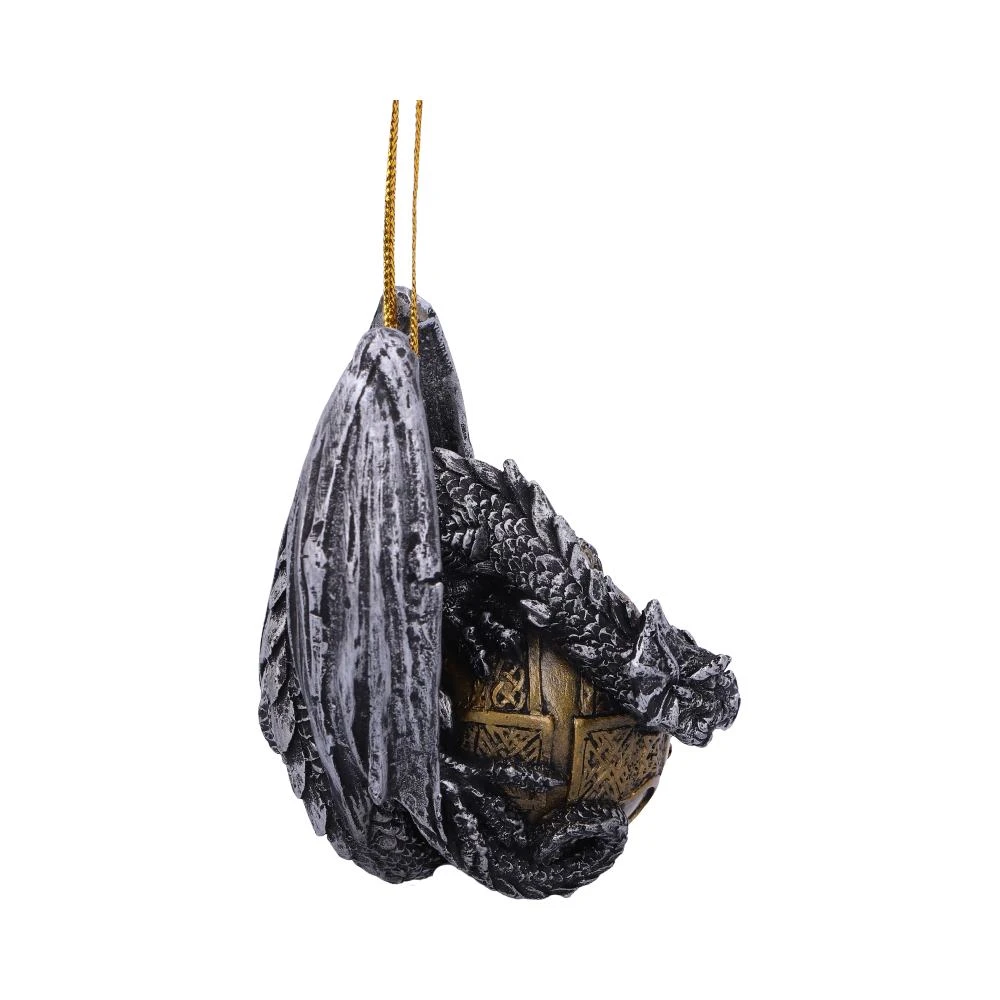 Suspended from a golden thread, this beautifully crafted Dragon clings to the side of his treasured metallic golden sphere. Decorated with intricate patterns and centred by a celtic cross, this piece would make a quirky festive accompaniment or would be perfect as a year-round piece of fantasy decor. Cast in the finest resin before being lovingly hand-painted this piece is perfect for those who have an affinity for mythical beasts.