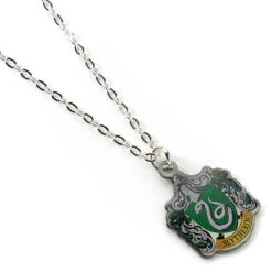 The Crest of the famous house, founded by Salazar Slytherin This necklace charm has been created using a print from the official Warner Bros style guide. It is approx 15 mm x 20 mm. The Necklace is a silver plated link chain which is 40cm with a 5cm extender chain This charm comes on the official Harry Potter branded card packaging.