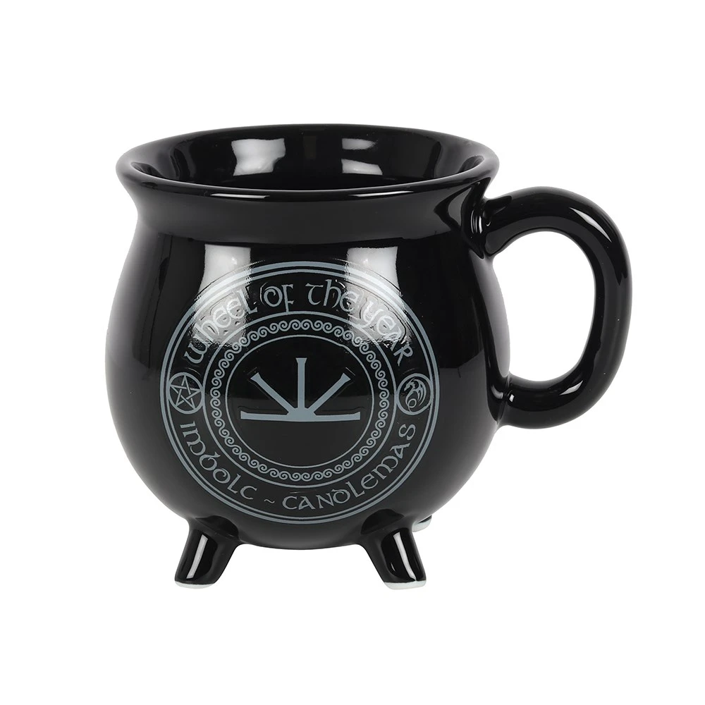 The fantastic art of Anne Stokes is brought to a new, magical dimension with our exclusive colour-changing cauldron mugs. Just pour a hot beverage inside and watch as a halo of sabbat symbols are slowly illuminated behind a yellow Imbolc dragon. Hand wash only. Do not microwave.