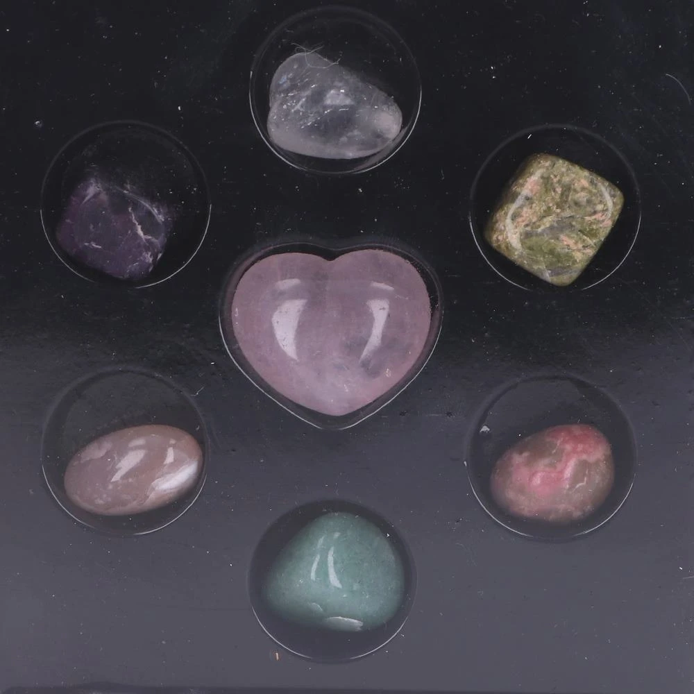 This Love and Attraction Gemstone Collection contains 7 natural stones and minerals, holding divine properties which can be used to attract more passionate relationships. A small black leather pouch is included in the set which can keep all the stones safe, and great for taking on the go. This set is the perfect gift for anyone looking to attract more love and passion in their life.