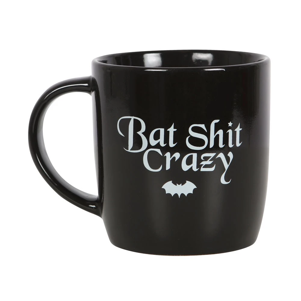Feel a bit batty before having your caffeine fix? This funny mug features ‘Bat Shit Crazy’ text that will let everyone know to leave you alone until after you’ve had your morning cuppa. 500ml capacity. Dishwasher and microwave safe. Part of the Dark Lair range of gothic bat and spider giftware.