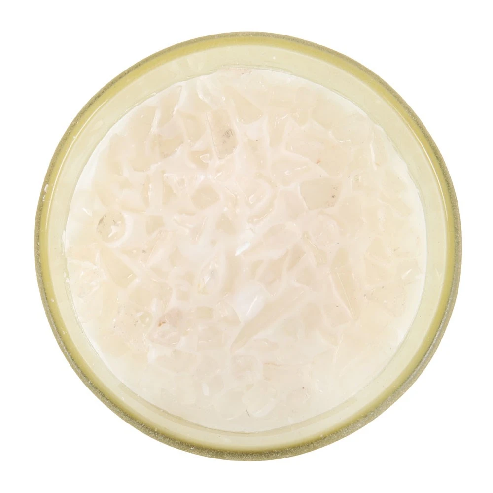 Manifest your dreams under the new moon with this stunning Wild Orange fragranced candle. A yellow frosted glass holder and metallic lid are accented by a scattering of clear quartz crystal chips that can later be reused for a multitude of spiritual and decorative purposes. Paraffin wax. Approximate burn time of 25 hours. Please practice caution when burning and never leave lit candle unattended. Part of the Modern Magic range of contemporary crystal themed gifts and home decor.