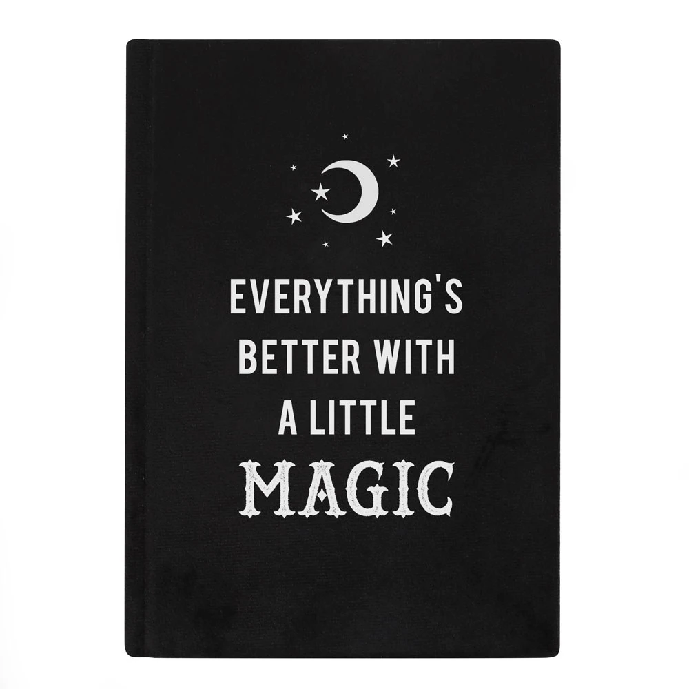 Store spells, rituals and incantations in this A5 notebook with lined pages and a luxe velvet black cover featuring the quote ‘Everything’s Better with a Little Magic’ and a mystical moon and star design. Part of our ‘Black Magic’ collection.