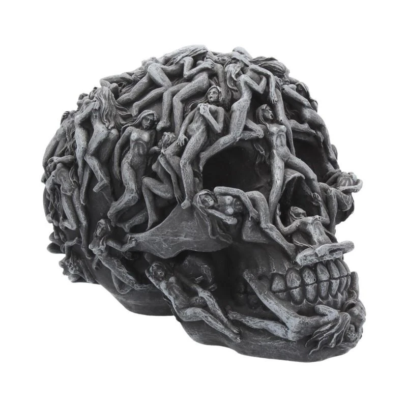 Dark grey, the bulk of this skull is covered in writhing nubile female forms, engaged in multiple acts. Trapped by their own lasciviousness, they are the same dull grey as the skull. Cast in high-quality resin before being expertly hand-painted, this illustration of the sin of lust is a great gift for those who only have one thing on their mind.