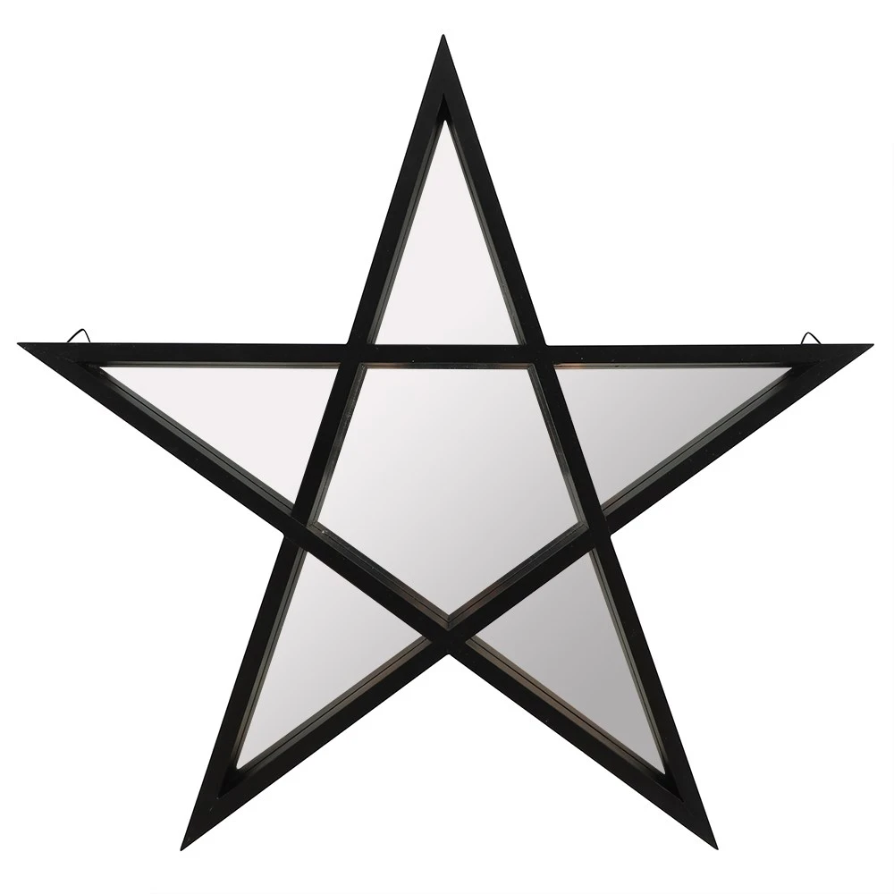 Wall art and mirror in one – this black pentagram design is a bold statement piece for decorating the home or even a retail space with an alternative theme.