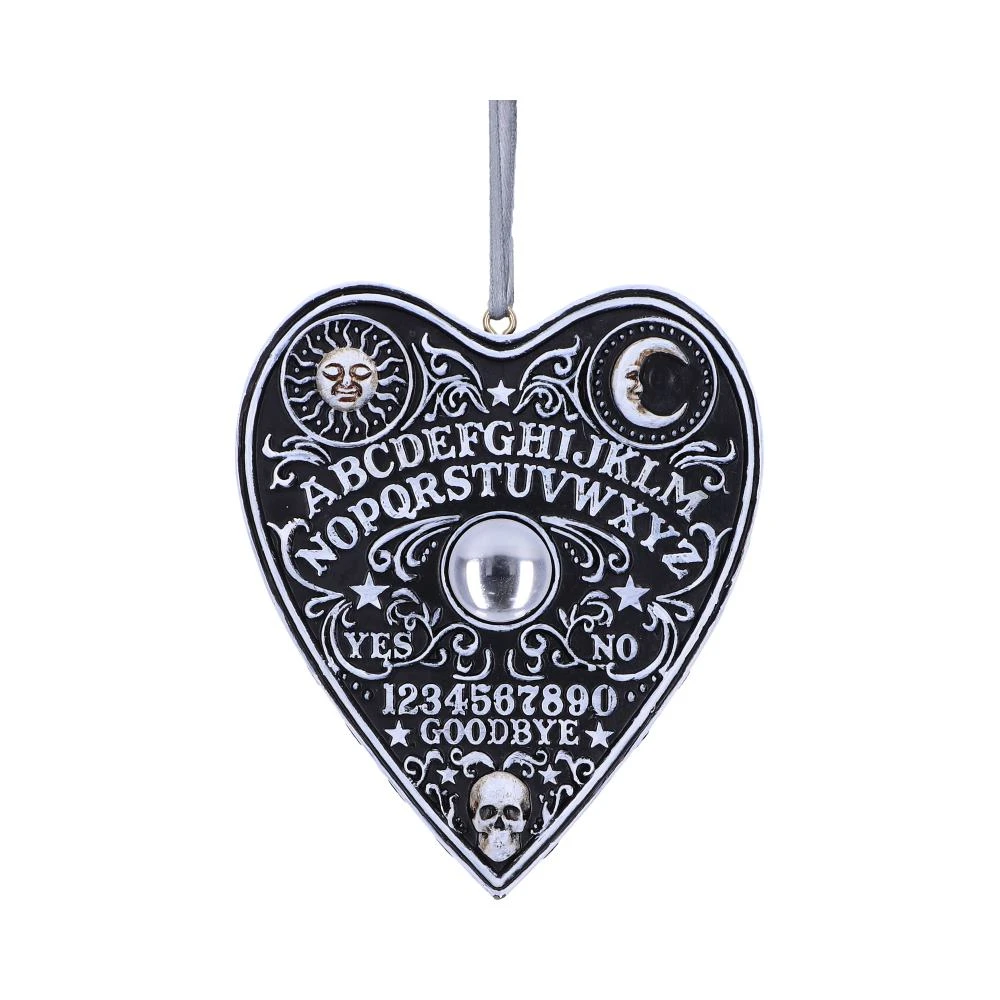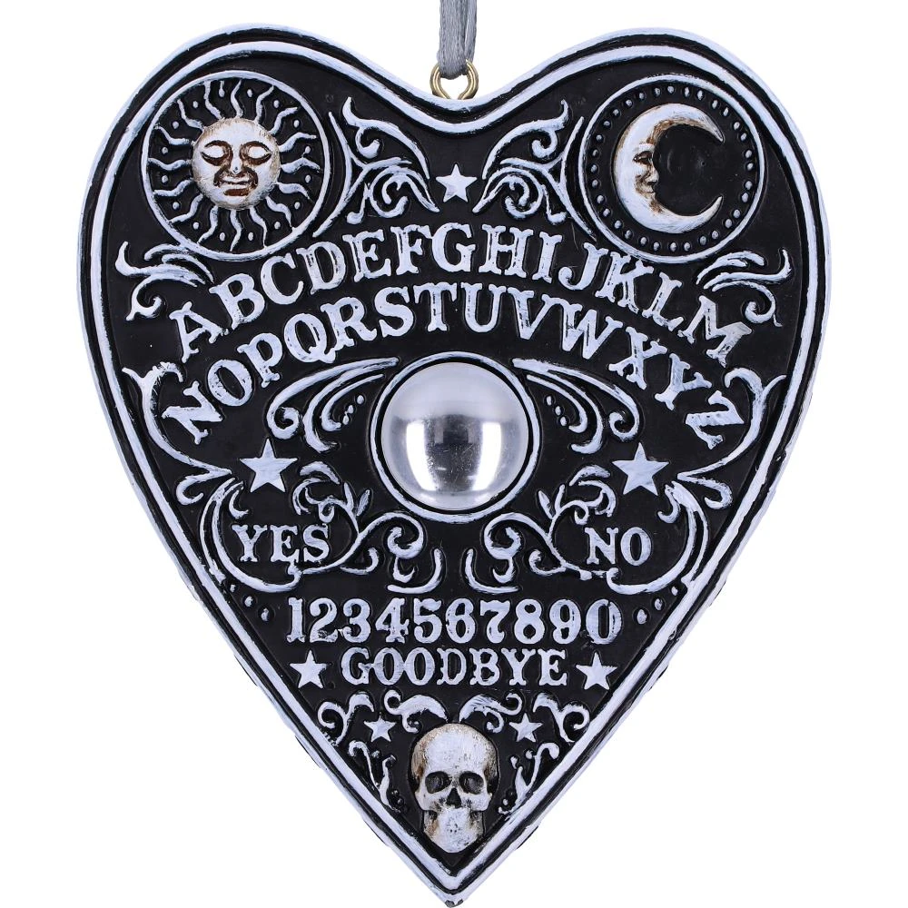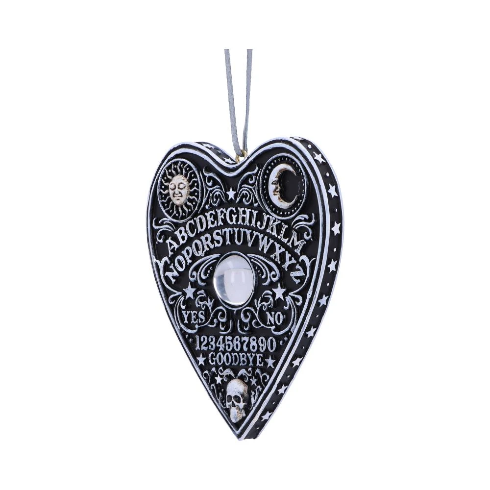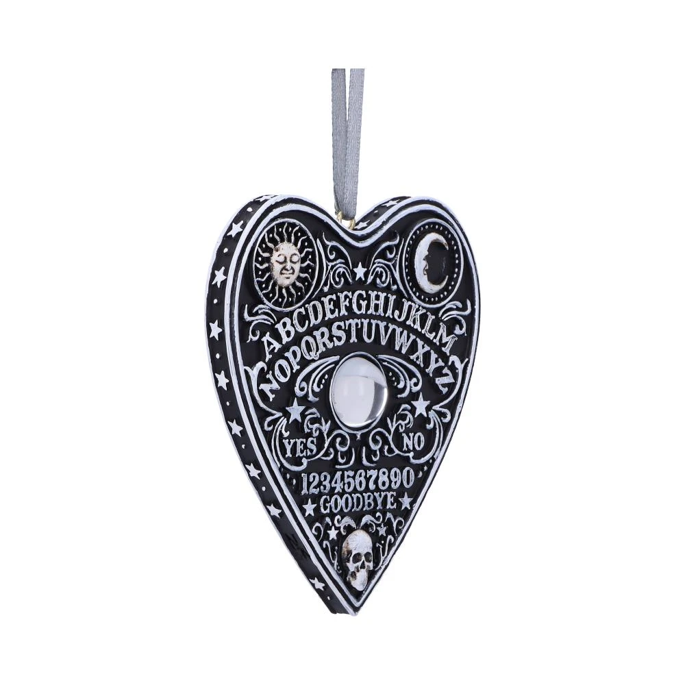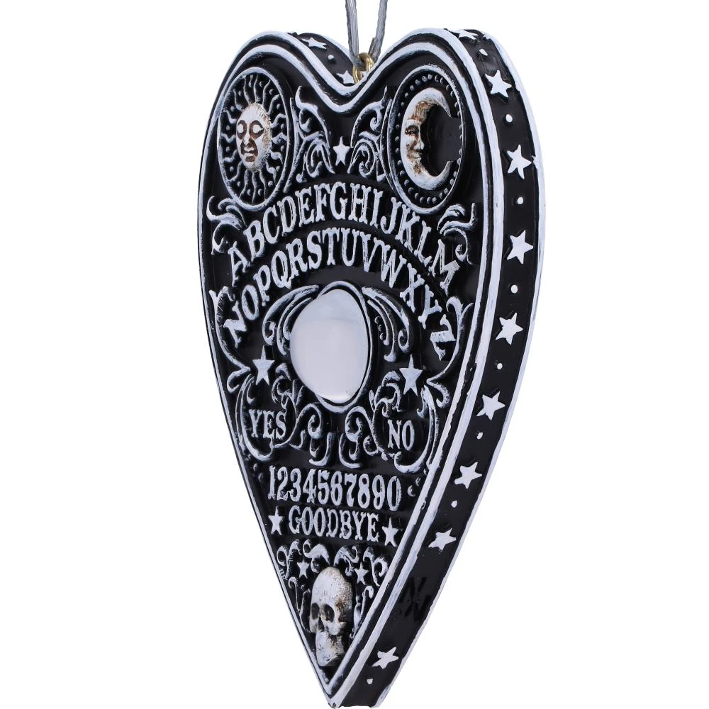 Uit de betoverende geesten van Nemesis Now’s in-house design team komt deze spirit-board hangende decoratie. Gevormd als een hart en versierd met ons originele sierlijke ontwerp, is dit hangende ornament gegoten in de fijnste hars voordat het vakkundig met de hand wordt beschilderd, waardoor het het perfecte product is voor elk alternatief huis of gothic collectie.