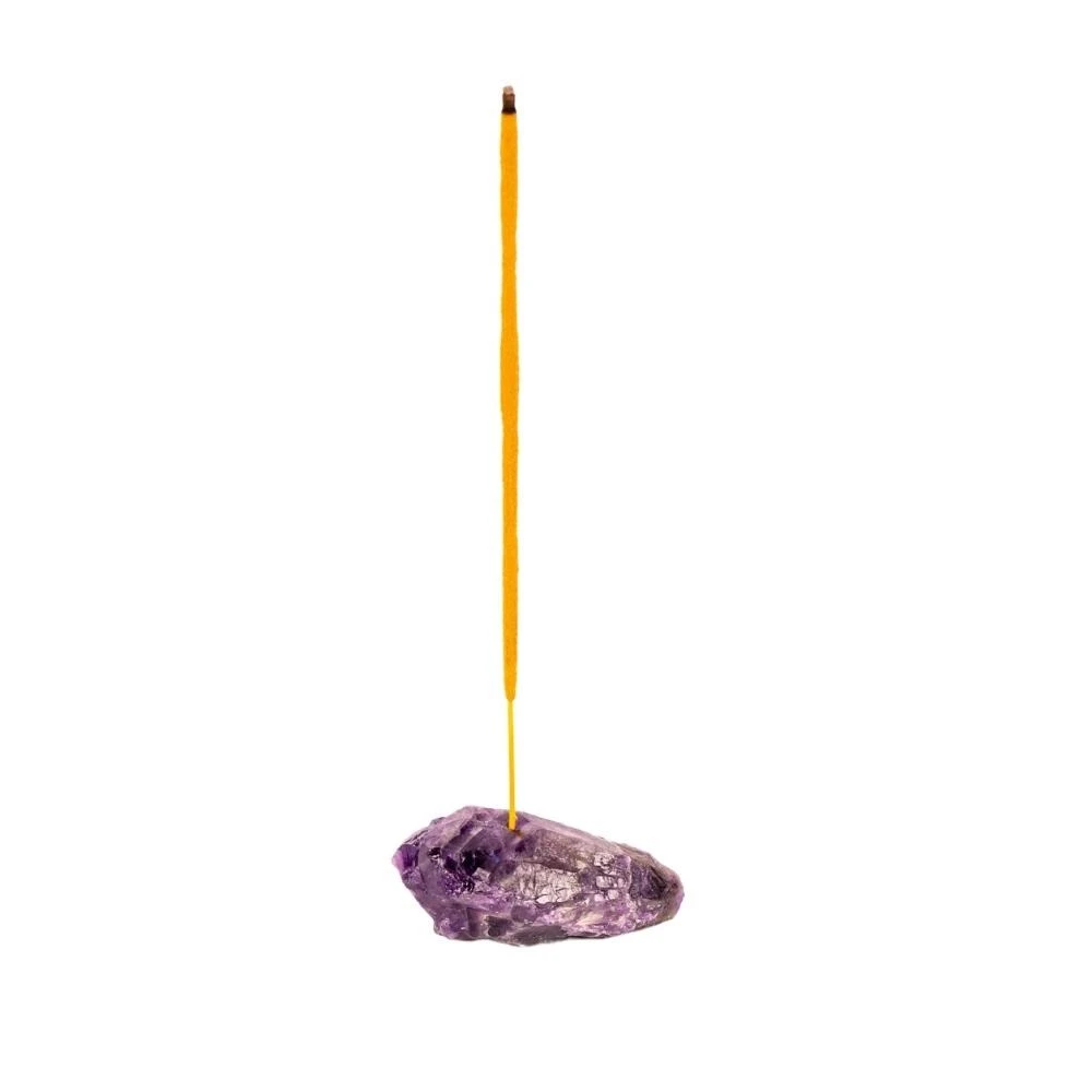 Amethyst is one of the most popular crystals and is said to promote calmness and aid in restful sleep. Pair this raw amethyst with your favourite incense stick scent to relieve stress and cleanse the mind. Crystal holds one incense stick. Due to the natural nature of this stone, size, shape and colour will vary.