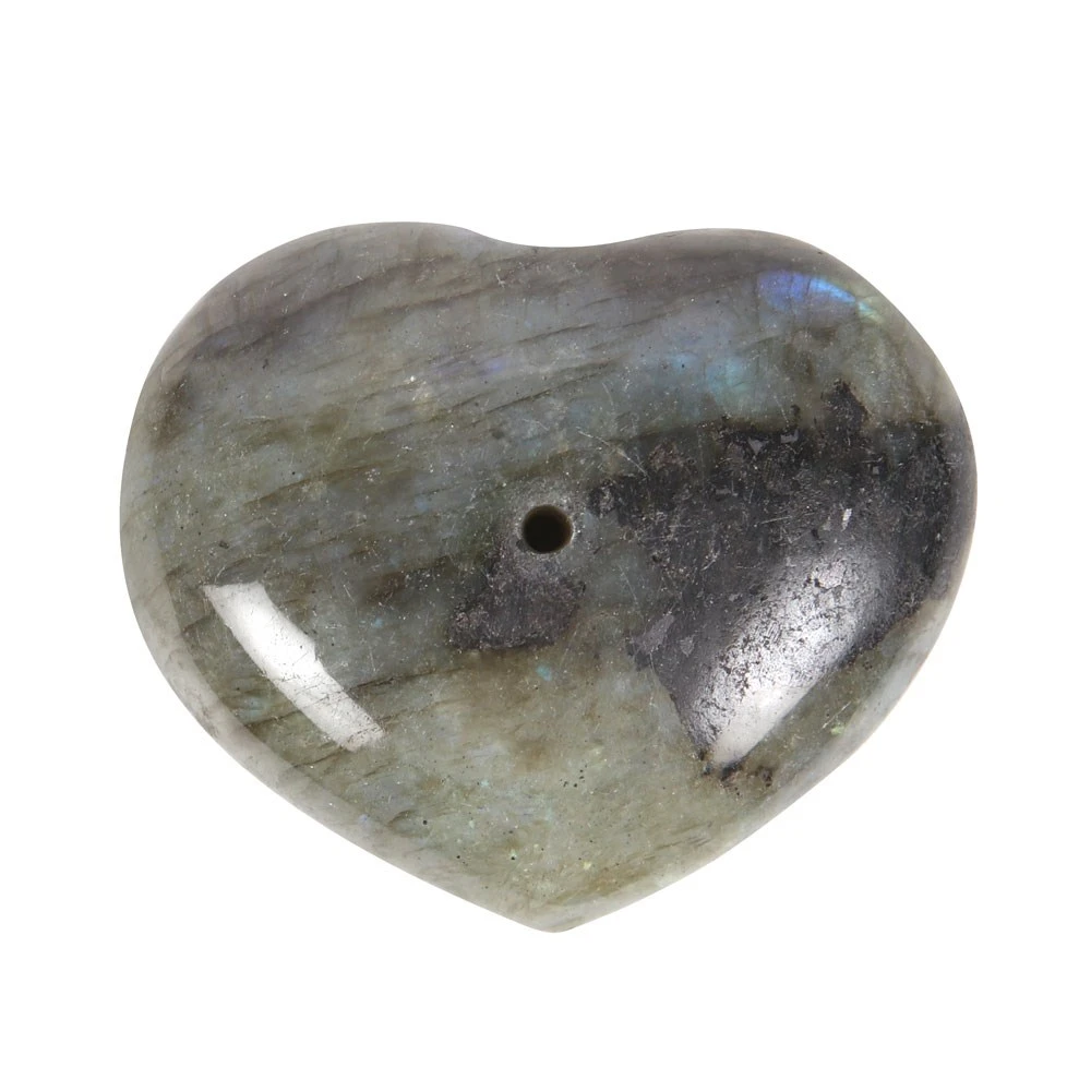 Labradorite is a powerful, green-grey stone said to alleviate fear and promote intuition. Pair this heart-shaped labradorite with your favourite incense stick scent to relieve stress and cleanse the mind. Crystal holds one incense stick. Due to the natural nature of this stone, size, shape and colour will vary.