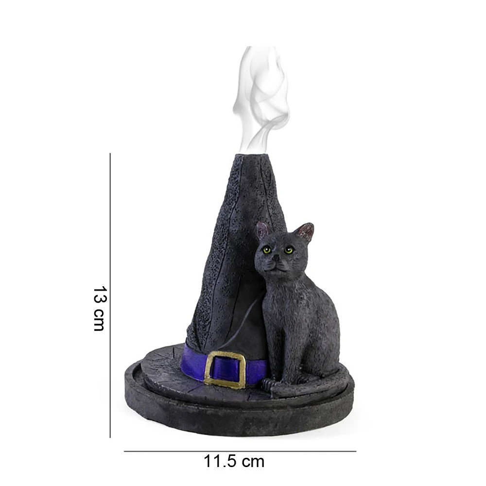 Mooie incense cone houder van een heksenhoed met een zwarte kat.