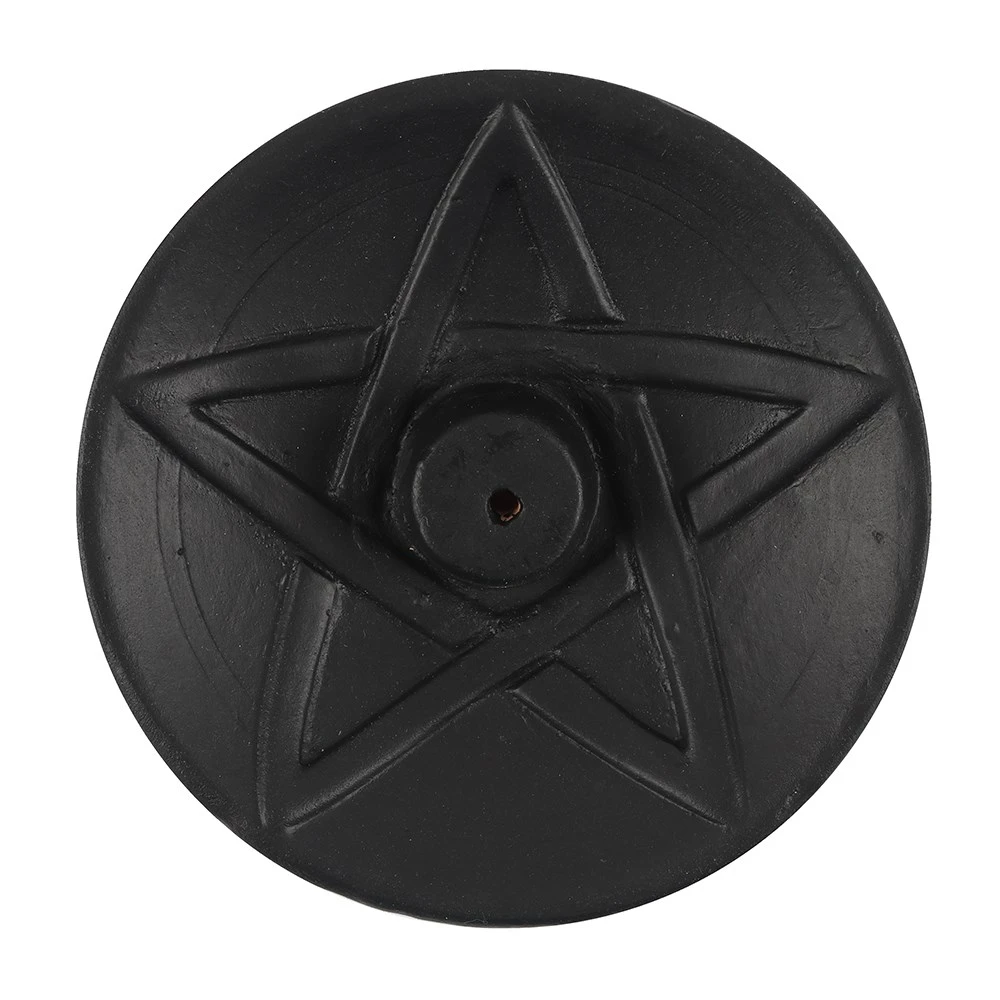 This striking terracotta incense stick holder plate features a black pentagram design. Perfect in size for placing on a sacred altar or sunny windowsill.