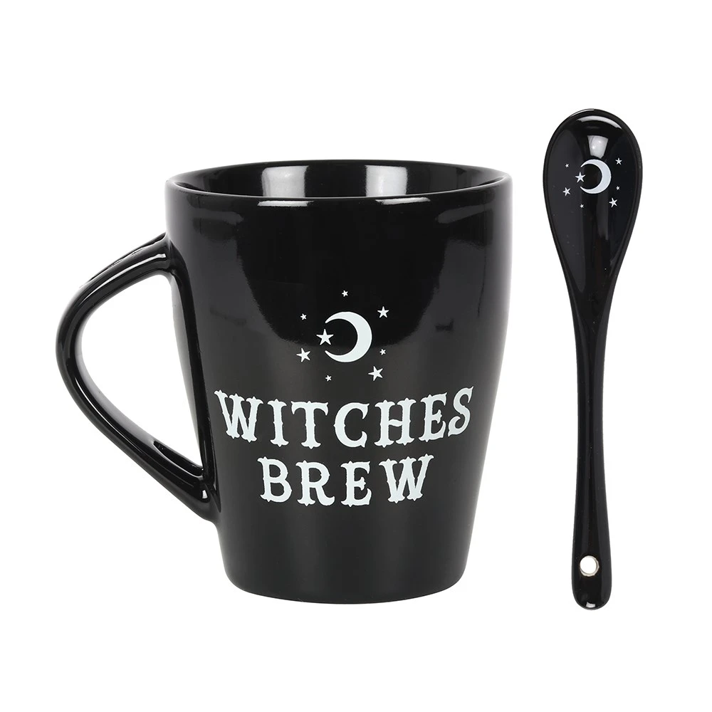 This bewitching mug and spoon set will add a pinch of magic to every cuppa. Style features ‘Witches Brew’ text and matching teaspoon with a mystical moon and star design that fits perfectly in a slotted handle. 500ml capacity. Dishwasher and microwave safe. Designed by Something Different and part of the bestselling Black Magic range of gothic gifts and homeware.